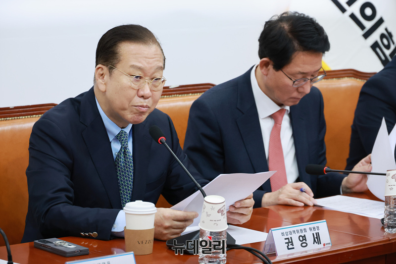 권영세 국민의힘 비상대책위원장이 10일 오전 국회에서 열린 비상대책위원회의에서 모두발언을 하고 있다.