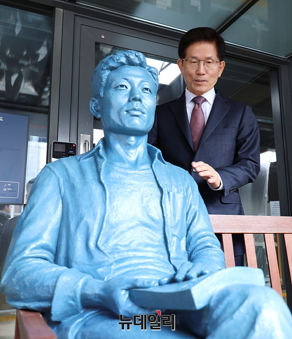 [포토] 김문수 '전태일 동상과 함께'