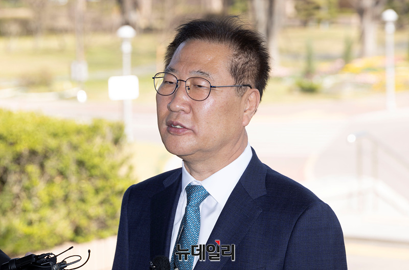 탄핵안 기각으로 직무 복귀한 박성재 법무부 장관이 10일 오후 경기 과천 법무부 청사로 출근하며 입장을 밝히고 있다. (경기 과천=서성진 기자)