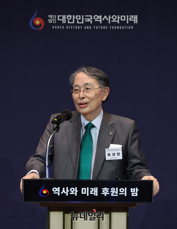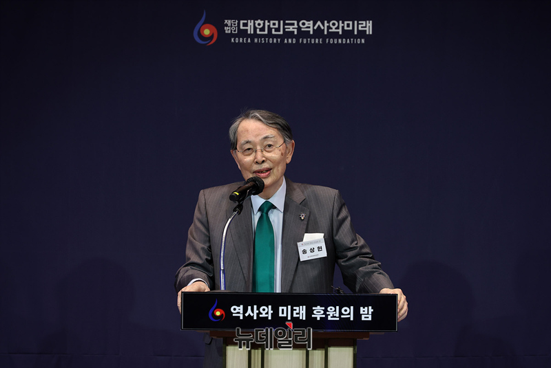 송상현 서울대 명예교수가 10일 오후 서울 중구 앰버서더 서울 풀만에서 열린 재단법인 '대한민국 역사와 미래' 후원의 밤 행사에서 축사를 하고 있다.