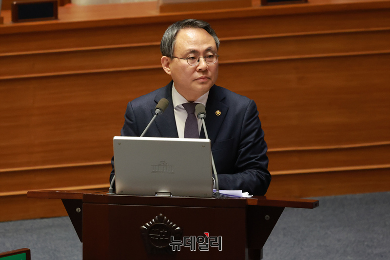 고기동 행정안전부 장관 직무대행이 14일 오후 국회에서 열린 정치·외교·통일·안보 분야 대정부질문을 위한 본회의에 참석해 질의에 답변을 하고 있다.