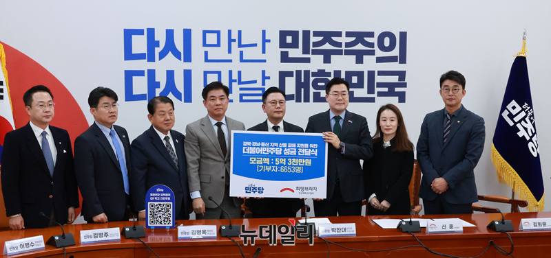 [포토] 경북·경남·울산 산불 피해 지원 성금 전달하는 민주당
