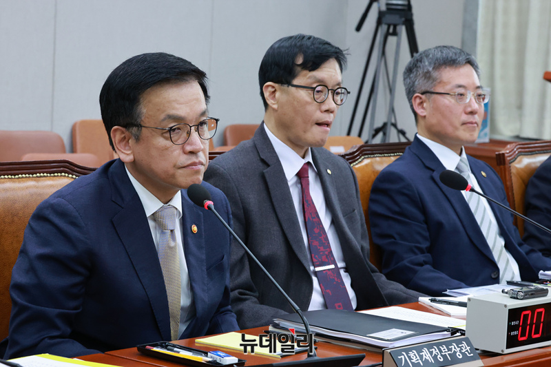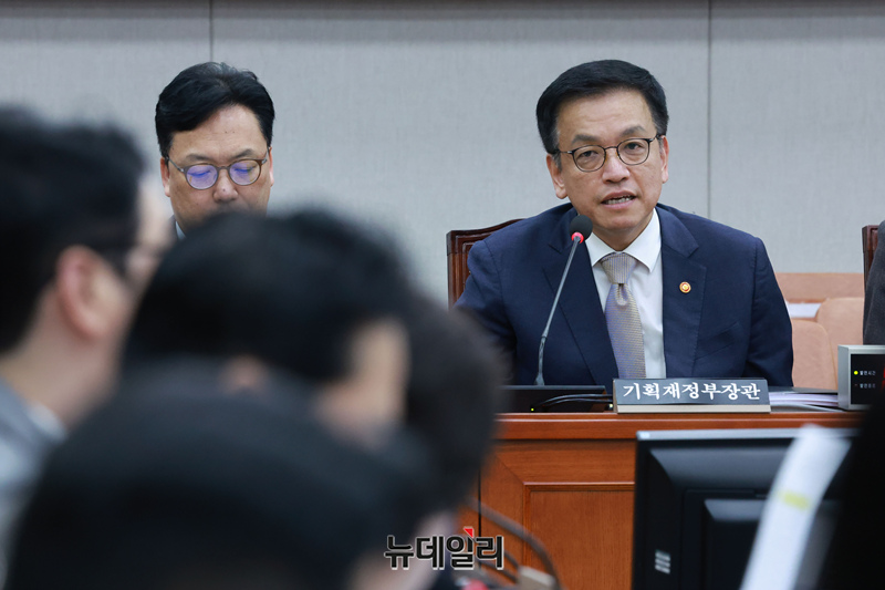 최상목 부총리 겸 기획재정부 장관이 16일 국회에서 열린 법제사법위원회의 '기획재정부 장관 최상목 탄핵소추사건 조사' 청문회에서 답변을 하고 있다.