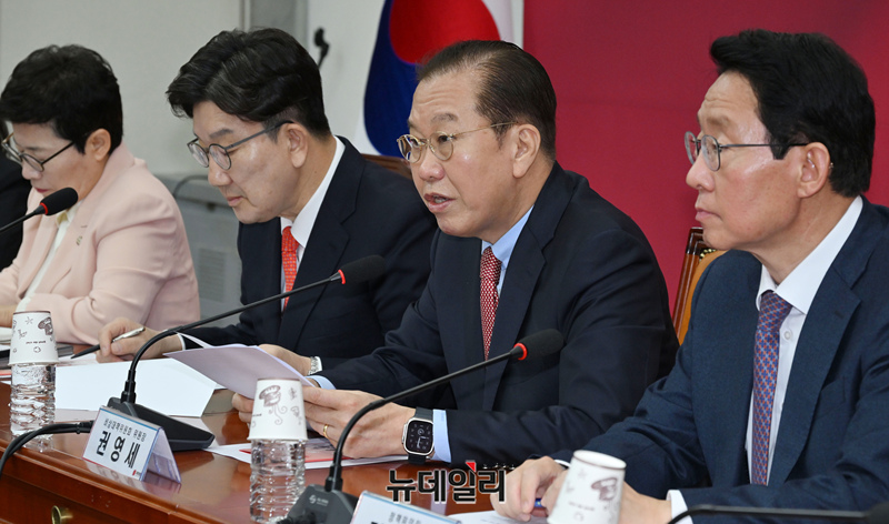 권영세 국민의힘 비상대책위원장이 17일 국회에서 열린 비상대책위원회의에서 발언하고 있다.