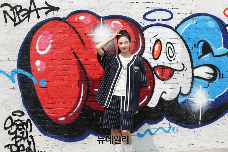 있지 리아가 17일 오전 서울 성동구 연무장길에 오픈한 NBA 서울 플래그십 스토어를 방문해 포토타임을 갖고 있다.