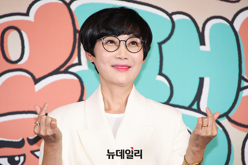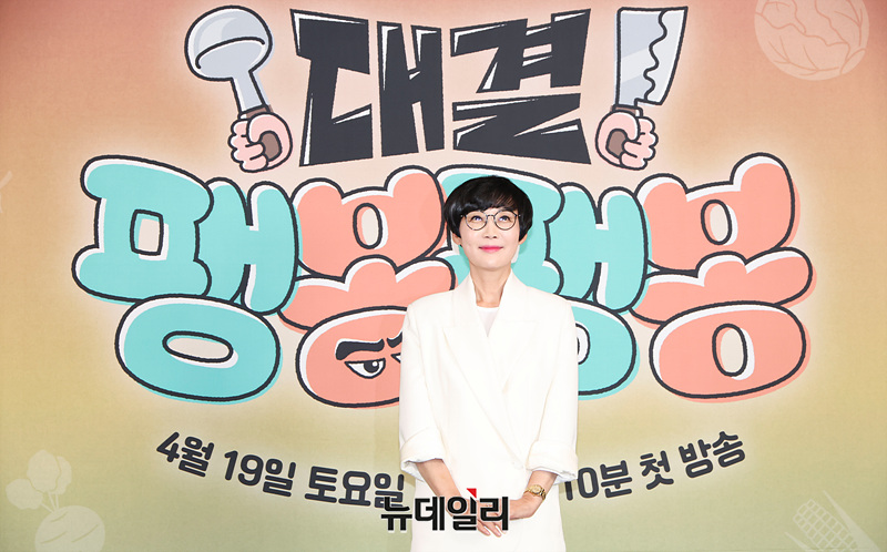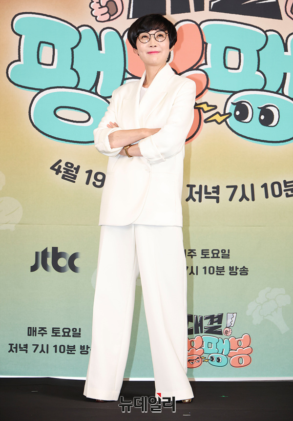 코미디언 팽현숙이 17일 오후 서울 마포구 스탠포드 호텔에서 열린 JTBC 예능 '대결! 팽봉팽봉' 제작발표회에서 포즈를 취하고 있다.