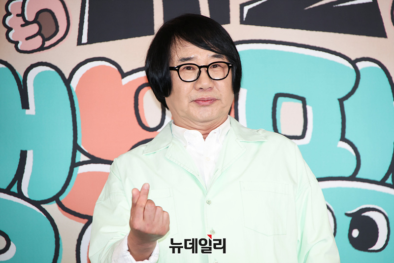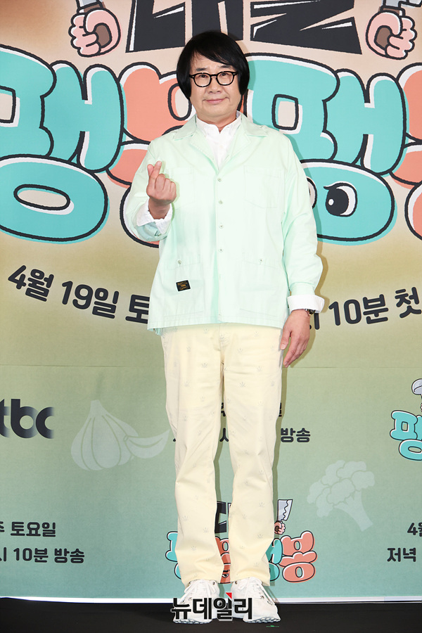 개그맨 최양락이 17일 오후 서울 마포구 스탠포드 호텔에서 열린 JTBC 예능 '대결! 팽봉팽봉' 제작발표회에서 포즈를 취하고 있다.