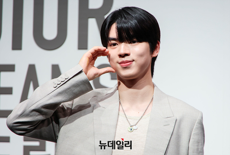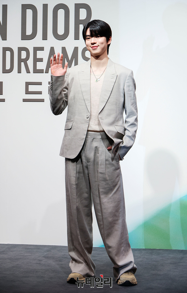 피겨스케이팅 선수 차준환이 18일 서울 중구 동대문디자인플라자(DDP)에서 열린 '크리스챤 디올 : 디자이너 오브 드림스' 전시 기념 포토월에서 포즈를 취하고 있다.