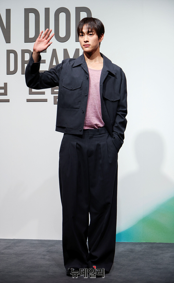 모델 홍태준이 18일 서울 중구 동대문디자인플라자(DDP)에서 열린 '크리스챤 디올 : 디자이너 오브 드림스' 전시 기념 포토월에서 포즈를 취하고 있다.