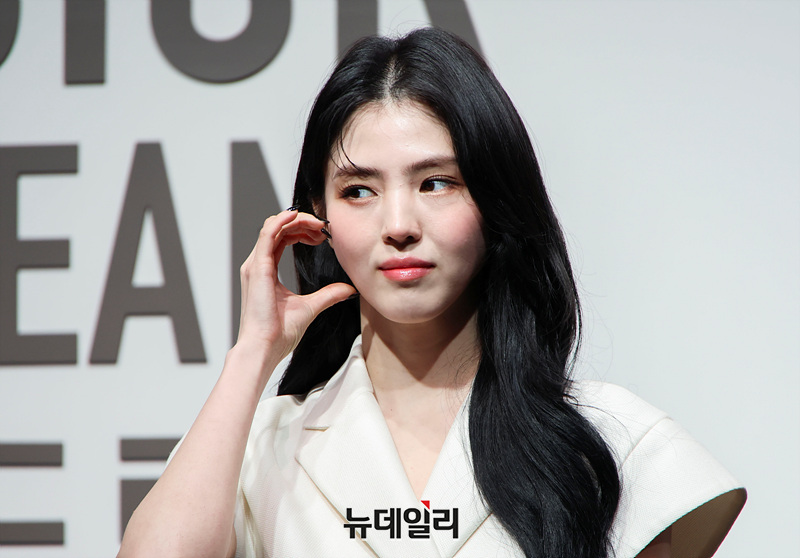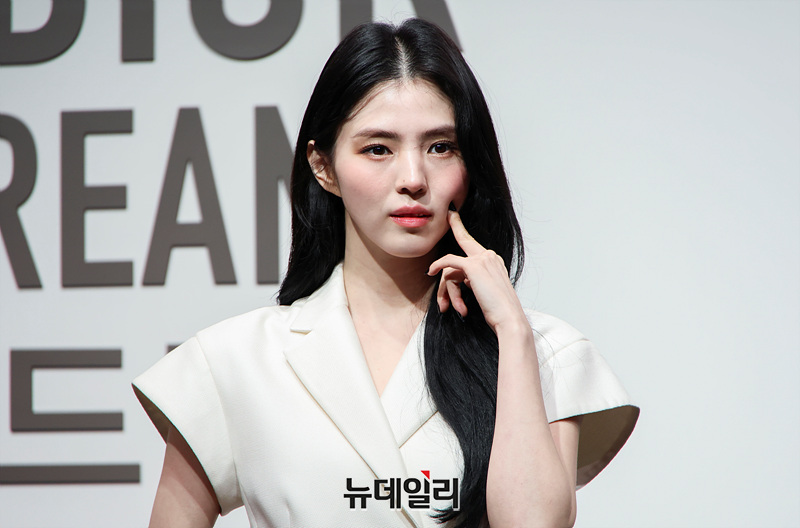 배우 한소희가 18일 서울 중구 동대문디자인플라자(DDP)에서 열린 '크리스챤 디올 : 디자이너 오브 드림스' 전시 기념 포토월에서 포즈를 취하고 있다.