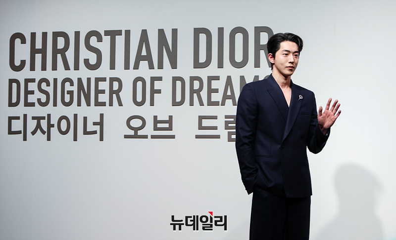 배우 남주혁이 18일 서울 중구 동대문디자인플라자(DDP)에서 열린 '크리스챤 디올 : 디자이너 오브 드림스' 전시 기념 포토월에서 포즈를 취하고 있다.
