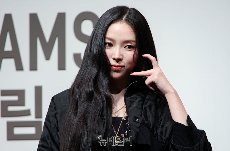 그룹 미야오 나린이 18일 서울 중구 동대문디자인플라자(DDP)에서 열린 '크리스챤 디올 : 디자이너 오브 드림스' 전시 기념 포토월에서 포즈를 취하고 있다.
