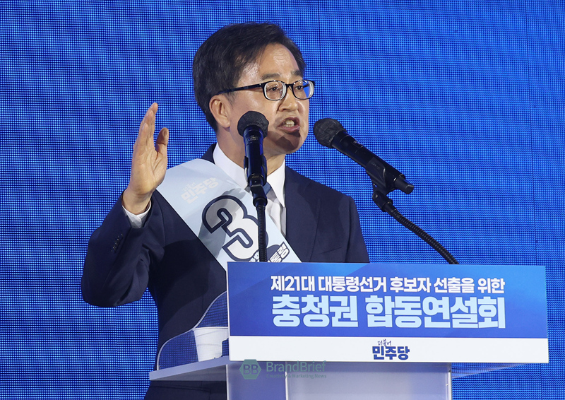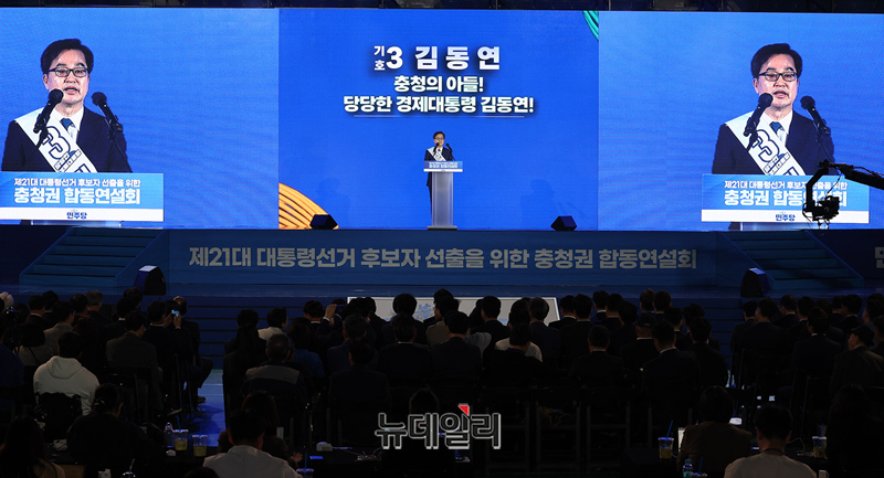 김동연 민주당 경선 후보가 19일 오후 충북 청주체육관에서 열린 더불어민주당 제21대 대선 경선 충청권 순회경선에서 정견발표를 하고 있다.