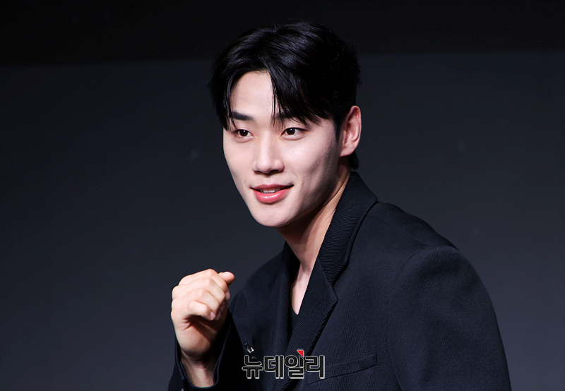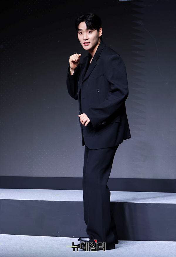 배우 이민재가 21일 오전 서울 마포구 호텔 나루 엠갤러리에서 열린 넷플릭스 드라마 '약한영웅 Class 2' 제작발표회에서 포즈를 취하고 있다.