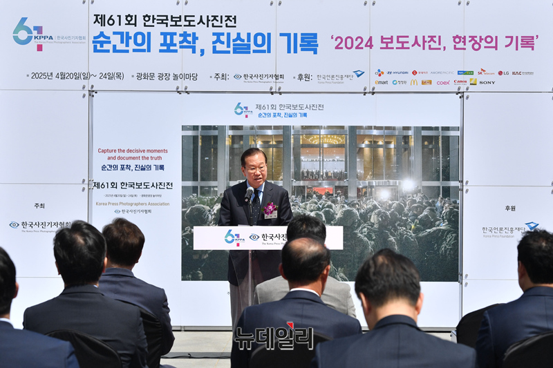 권영세 국민의힘 비대위원장이 21일 서울 종로구 광화문 광장에서 열린 제61회 한국보도사진전 '순간의 포착, 진실의 기록' 개막식에서 축사를 하고 있다. (사진=공동취재단)