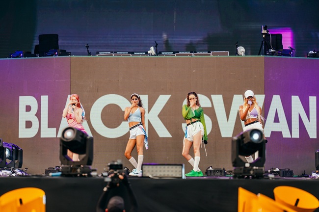 소속사 ㈜디알뮤직은 "'카르마(KARMA)', '롤업(Roll Up)' 등의 히트곡을 포함해 10여 곡의 무대를 펼친 블랙스완은 이날 미발매 신곡까지 선공개하며 중국 10만 관객이 모인 공연장을 뜨겁게 달궜다"고 밝혔다. -