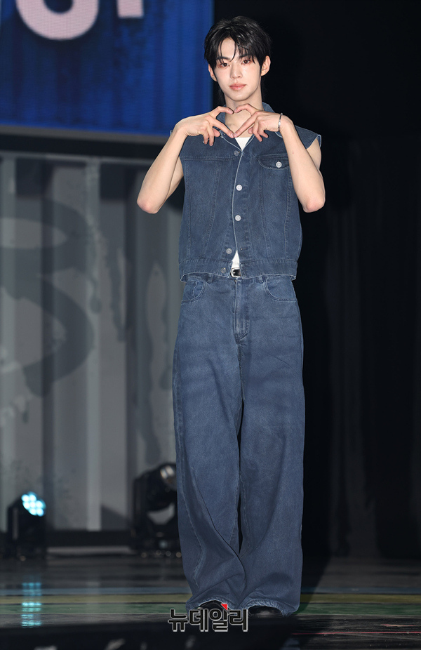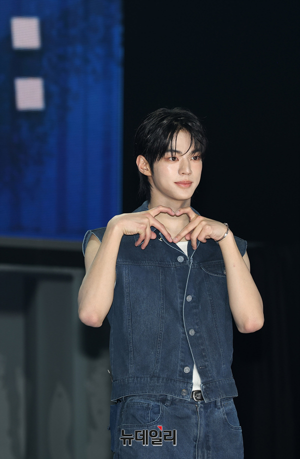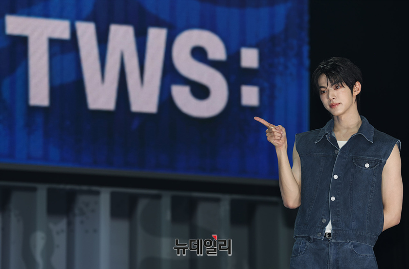 TWS(투어스) 도훈이 21일 오후 서울 용산구 블루스퀘어에서 열린 미니 3집 'TRY WITH US' 미디어 쇼케이스에서 포즈를 취하고 있다.