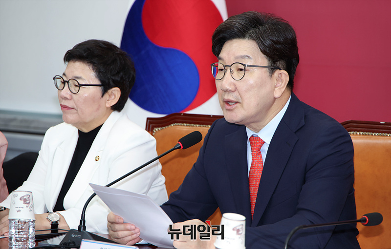권성동 국민의힘 원내대표가 24일 국회에서 열린 비상대책위원회의에서 모두발언을 하고 있다.