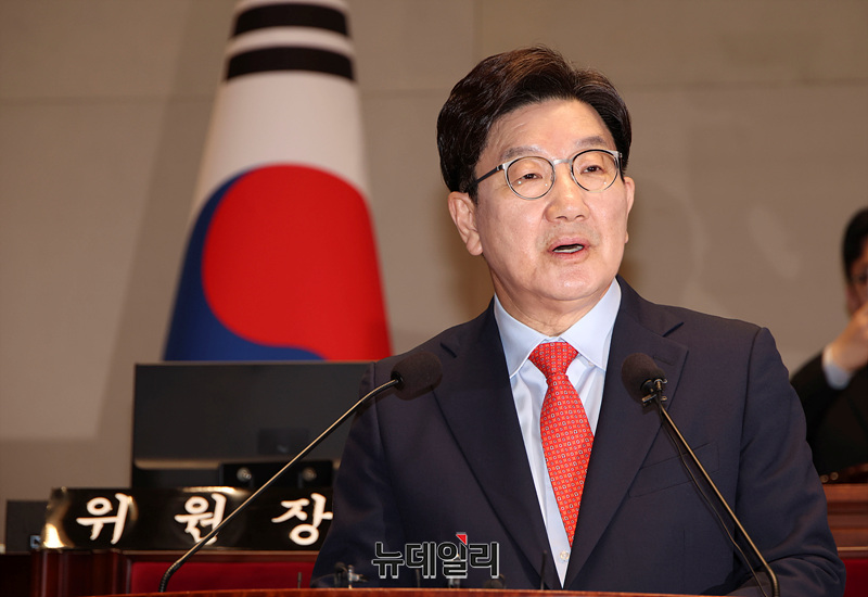 권성동 국민의힘 원내대표가 24일 오전 국회에서 열린 의원총회에서 모두발언을 하고 있다.