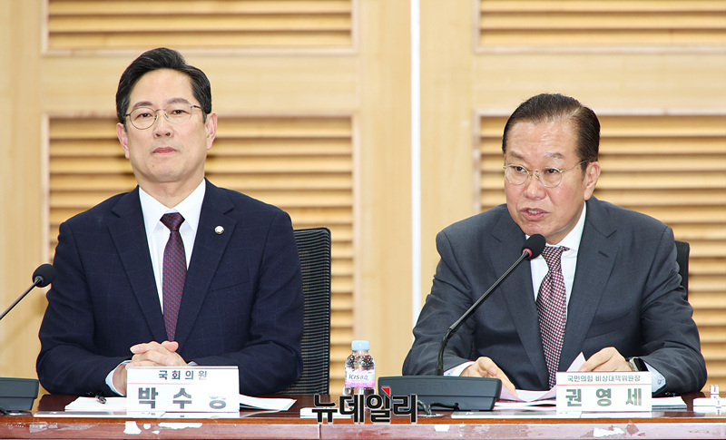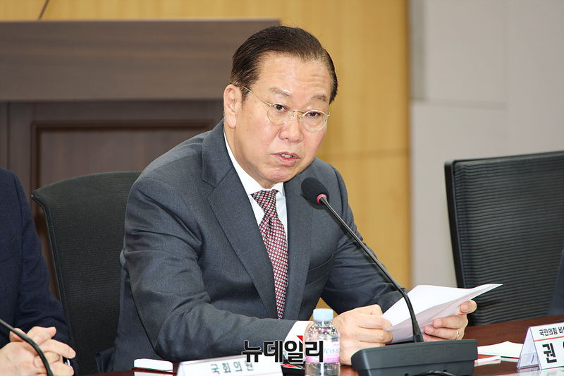 권영세 국민의힘 비상대책위원장이 24일 오후 국회 의원회관에서 열린 경제간첩의 활동과 입법적 대응 정책토론회에서 축사를 하고 있다.