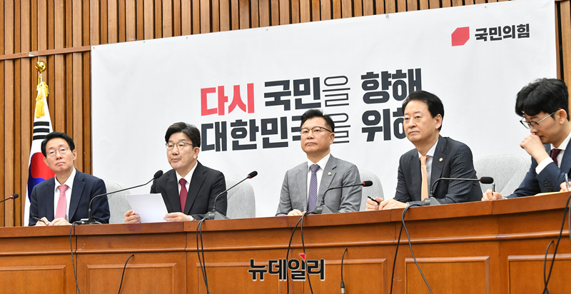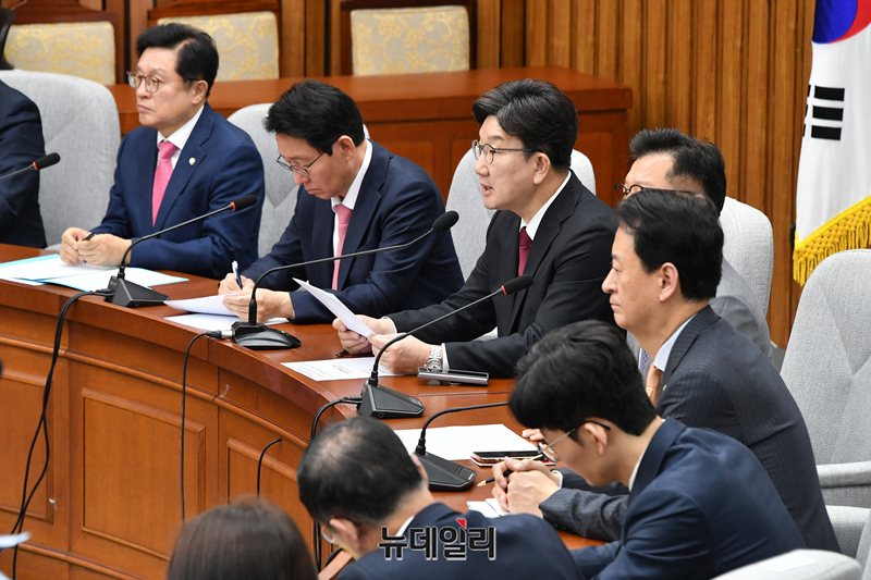 권성동 국민의힘 원내대표가 25일 오전 국회에서 열린 원내대책회의에서 모두발언을 하고 있다.