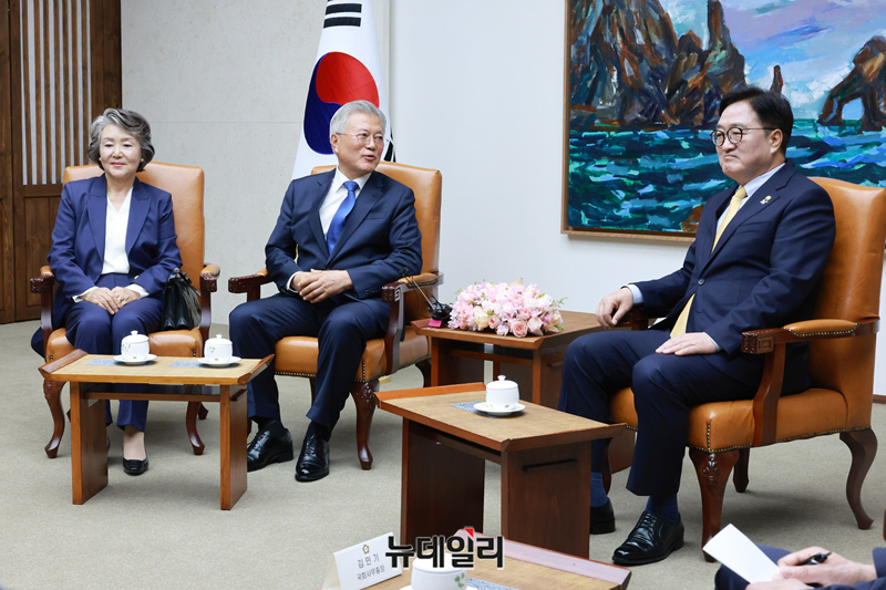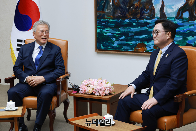 [포토] 환담 나누는 우원식 국회의장·문재인 전 대통령