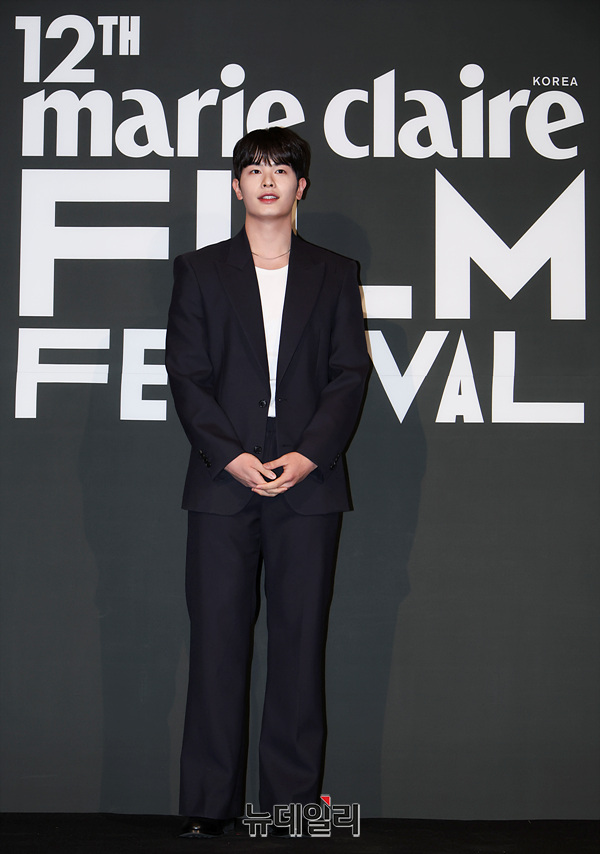 배우 정민규가 25일 오후 서울 용산구 CGV 용산아이파크몰에서 열린 '제12회 마리끌레르 영화제' 개막식 포토월에서 포즈를 취하고 있다.