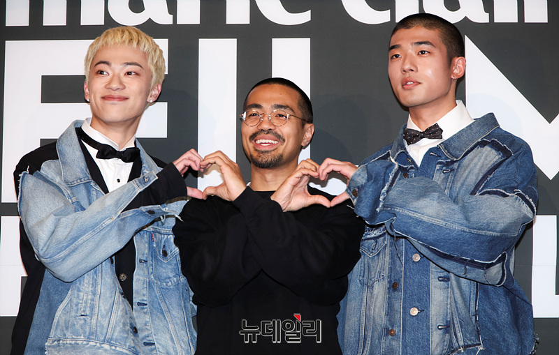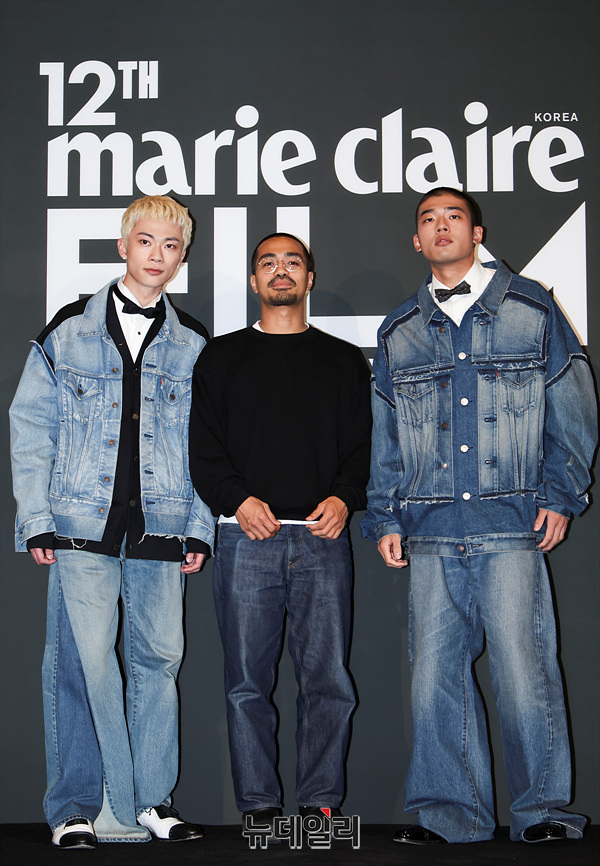 배우 쿠리하라 하야토, 감독 네오소라, 배우 히다카 유키토가 25일 오후 서울 용산구 CGV 용산아이파크몰에서 열린 '제12회 마리끌레르 영화제' 개막식 포토월에서 포즈를 취하고 있다.