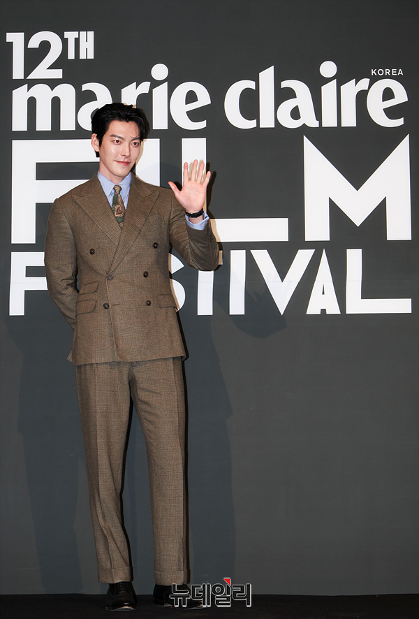 배우 김우빈이 25일 오후 서울 용산구 CGV 용산아이파크몰에서 열린 '제12회 마리끌레르 영화제' 개막식 포토월에서 포즈를 취하고 있다.