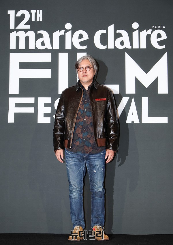 최동훈 감독이 25일 오후 서울 용산구 CGV 용산아이파크몰에서 열린 '제12회 마리끌레르 영화제' 개막식 포토월에서 포즈를 취하고 있다.