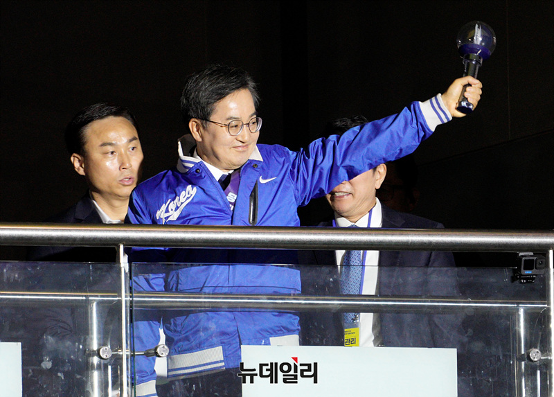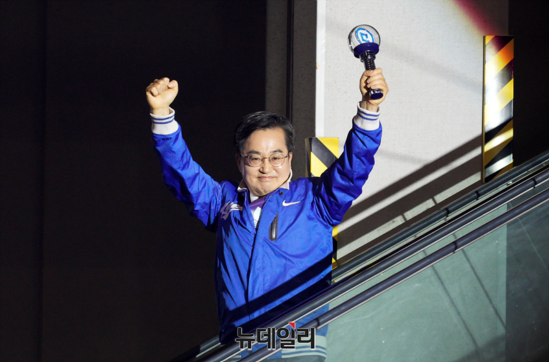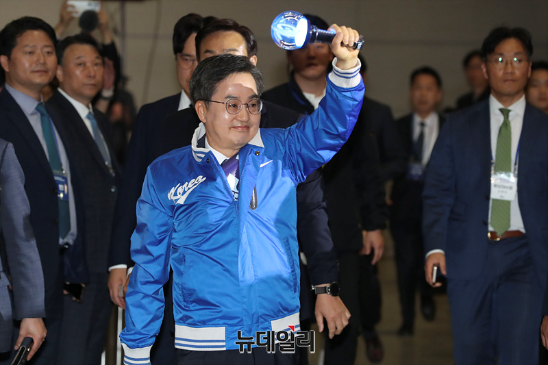 김동연 더불어민주당 대선 경선 후보가 27일 오후 경기 고양시 일산 킨텍스에서 열린 더불어민주당 제21대 대통령선거 후보자 선출을 위한 수도권·강원·제주 합동연설회에 입장하고 있다. (경기 고양=서성진 기자)