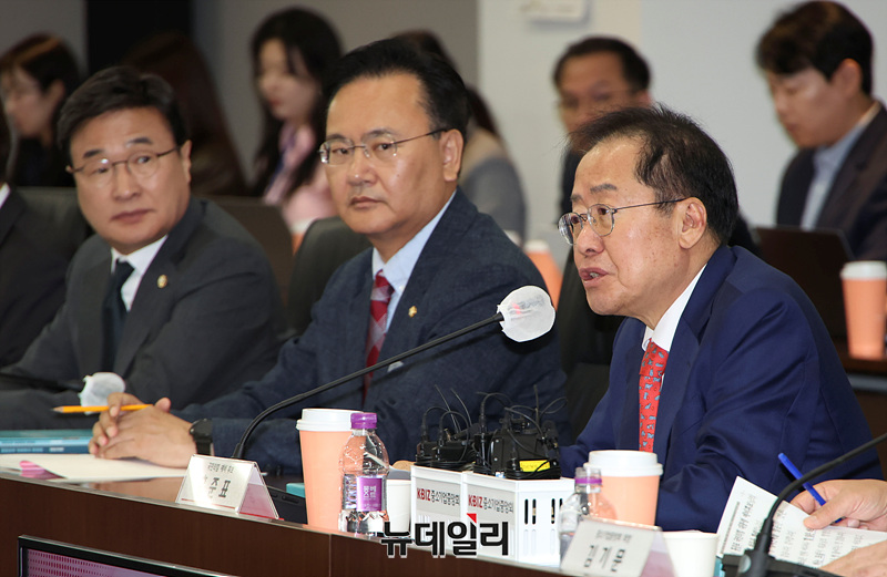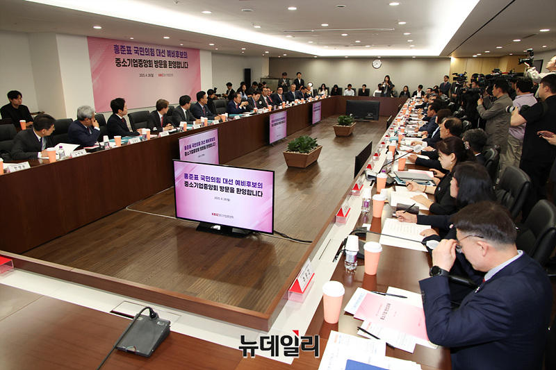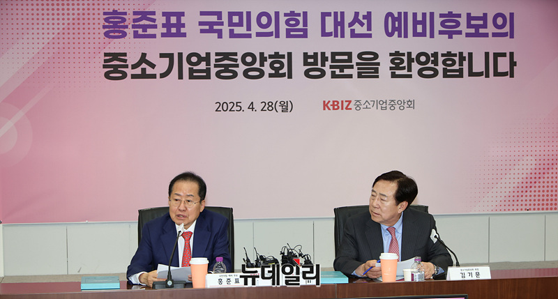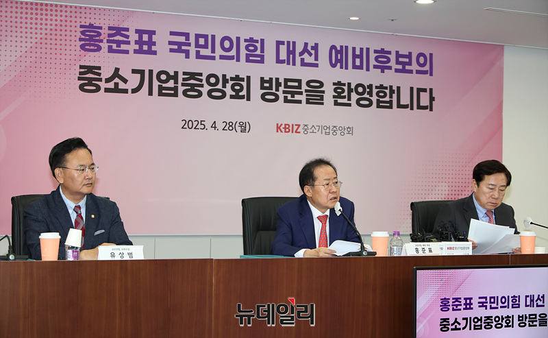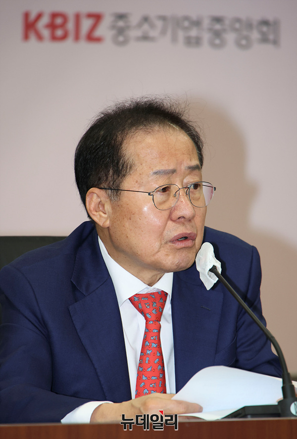 홍준표 국민의힘 대선 예비후보가 28일 오전 서울 여의도 중소기업중앙회에서 열린 간담회에서 발언하고 있다.