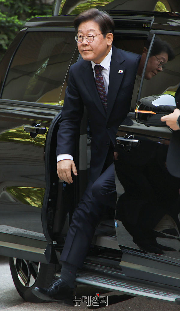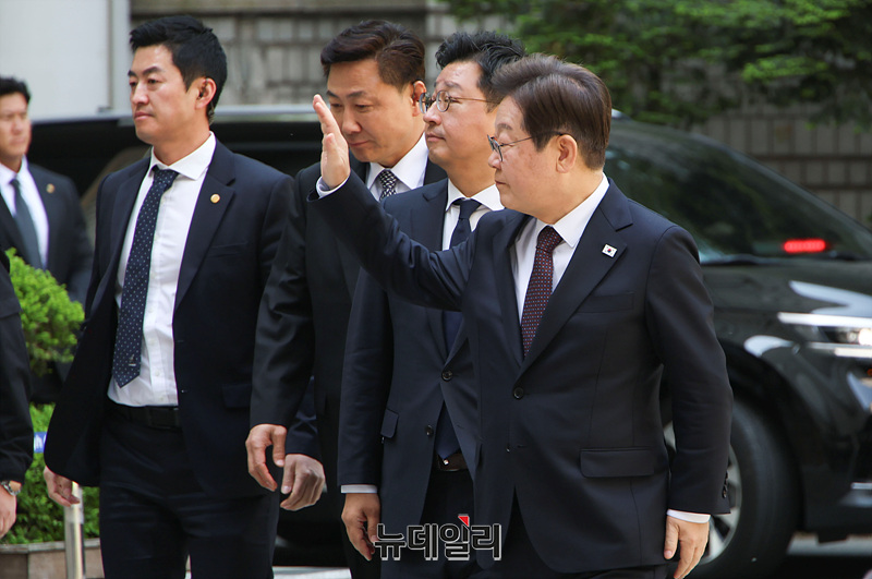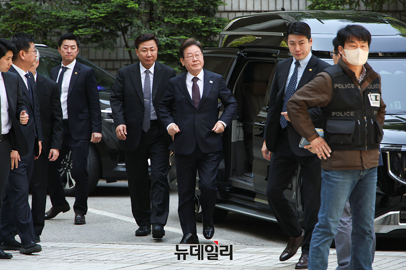 [포토] 대선후보 선출 뒤 첫 재판 출석하는 이재명