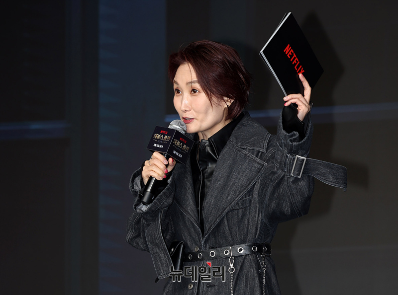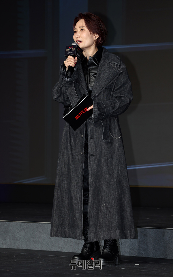 방송인 박경림이 29일 오전 서울 마포구 호텔 나루 서울에서 열린 넷플릭스 두뇌 서바이벌 예능 '데블스 플랜: 데스룸(연출 정종연)' 제작보고회에서 인사말을 하고 있다.'데블스 플랜: 데스룸'은 다양한 직업군의 플레이어가 7일간 합숙하며 최고의 브레인을 가리는 두뇌 서바이벌 게임이다. 시즌1보다 2명의 플레이어가 늘어난 14명의 각 분야 최고의 플레이어들이 출격한다.강지영, 규현, 김하린, 박상연, 세븐하이, 손은유, 윤소희, 이세돌, 이승현, 저스틴 H.민, 정현규, 최현준, 츄, 티노 등이 출연한다. 5월 6일 오후 4시 첫 공개.