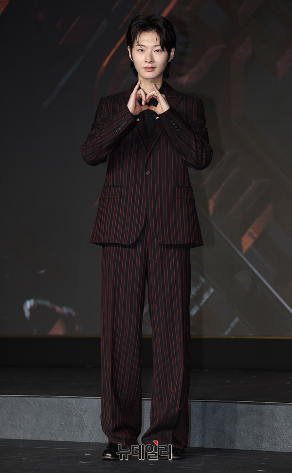 모델 최현준이 29일 오전 서울 마포구 호텔 나루 서울에서 열린 넷플릭스 두뇌 서바이벌 예능 '데블스 플랜: 데스룸(연출 정종연)' 제작보고회에서 포즈를 취하고 있다.'데블스 플랜: 데스룸'은 다양한 직업군의 플레이어가 7일간 합숙하며 최고의 브레인을 가리는 두뇌 서바이벌 게임이다. 시즌1보다 2명의 플레이어가 늘어난 14명의 각 분야 최고의 플레이어들이 출격한다.강지영, 규현, 김하린, 박상연, 세븐하이, 손은유, 윤소희, 이세돌, 이승현, 저스틴 H.민, 정현규, 최현준, 츄, 티노 등이 출연한다. 5월 6일 오후 4시 첫 공개.