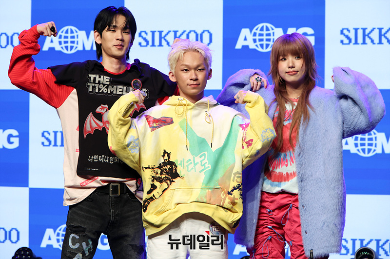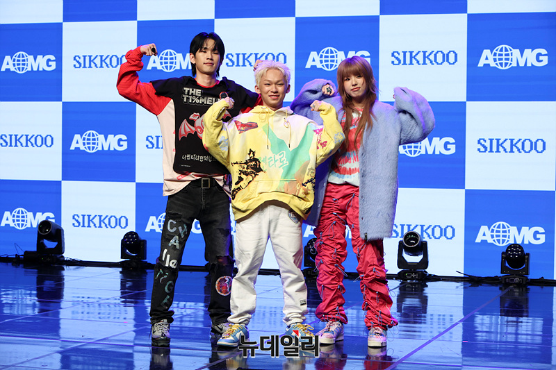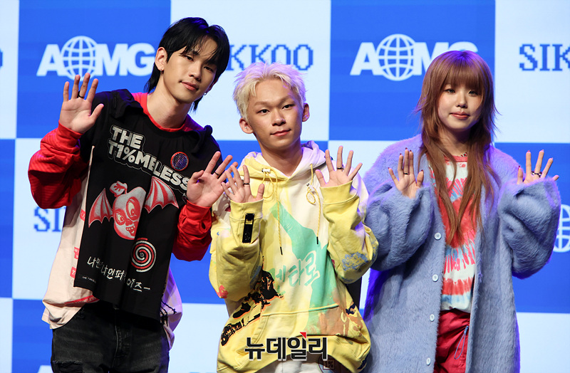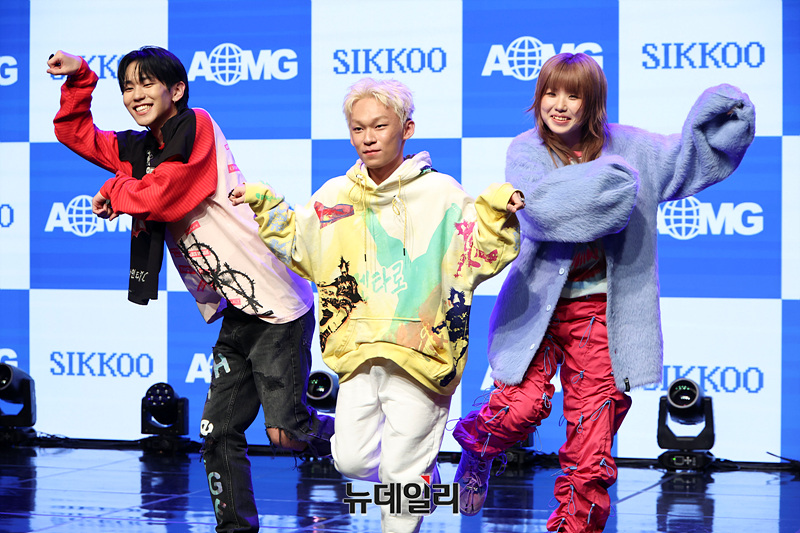 그룹 식구 요시, 구민재, 이백이 29일 오후 서울 강남구 일지아트홀에서 열린 데뷔 앨범 '간 (間)' 발매 기념 쇼케이스에서 포즈를 취하고 있다.