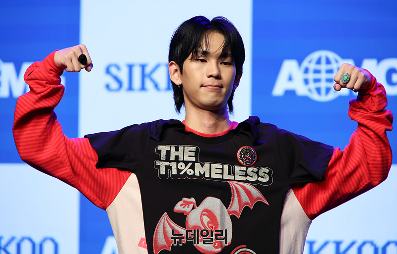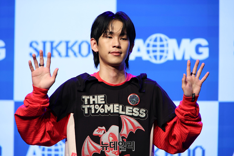 그룹 식구 요시가 29일 오후 서울 강남구 일지아트홀에서 열린 데뷔 앨범 '간 (間)' 발매 기념 쇼케이스에서 포즈를 취하고 있다.