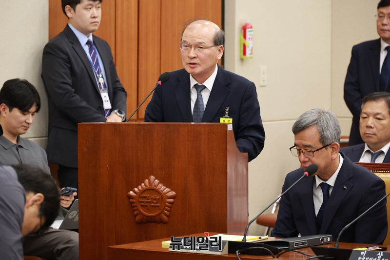 이상인 전 방송통신위원회 부위원장이 30일 오전 국회에서 열린 과학기술정보방송통신위원회 전체회의 SKT해킹 및 YTN 등 방송통신분야 청문회에서 증인선서 거부 이유를 밝히고 있다.