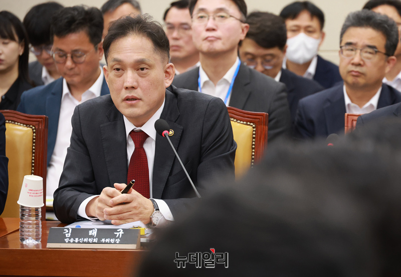 김태규 방송통신위원회 부위원장이 30일 오전 국회 과학기술정보방송통신위원회에서 열린 YTN 등 방송·통신 분야 청문회에서 의원 질의에 답변하고 있다.