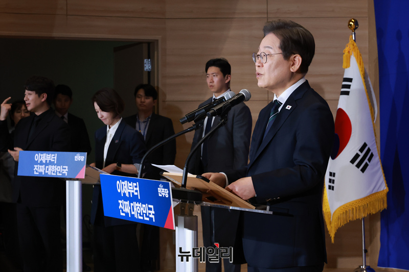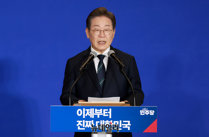 이재명 더불어민주당 대선 후보가 30일 오후 국회 의원회관에서 열린 더불어민주당 제21대 대통령선거 '진짜 대한민국' 중앙선거대책위원회 출범식에서 발언을 하고 있다.