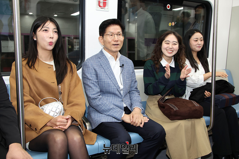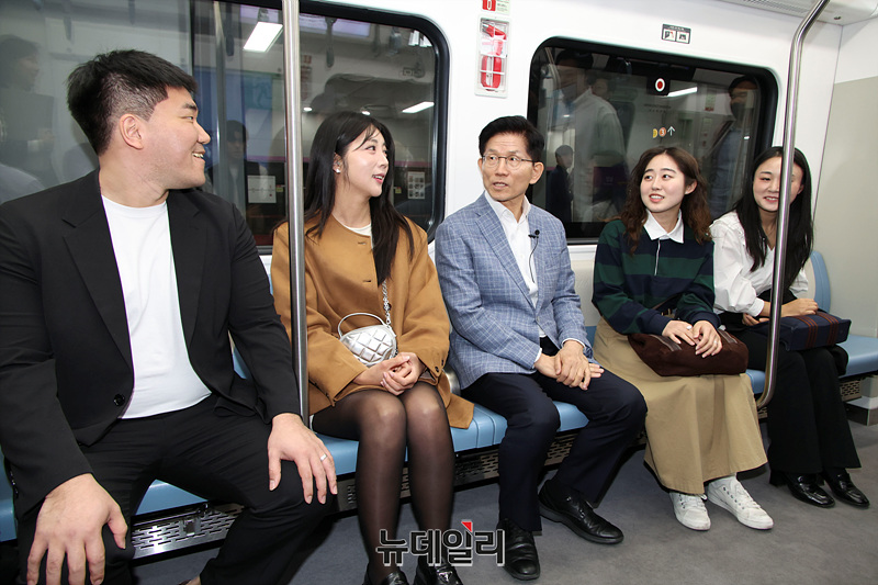 [포토] 청년들과 'GTX-A' 탑승한 김문수 후보