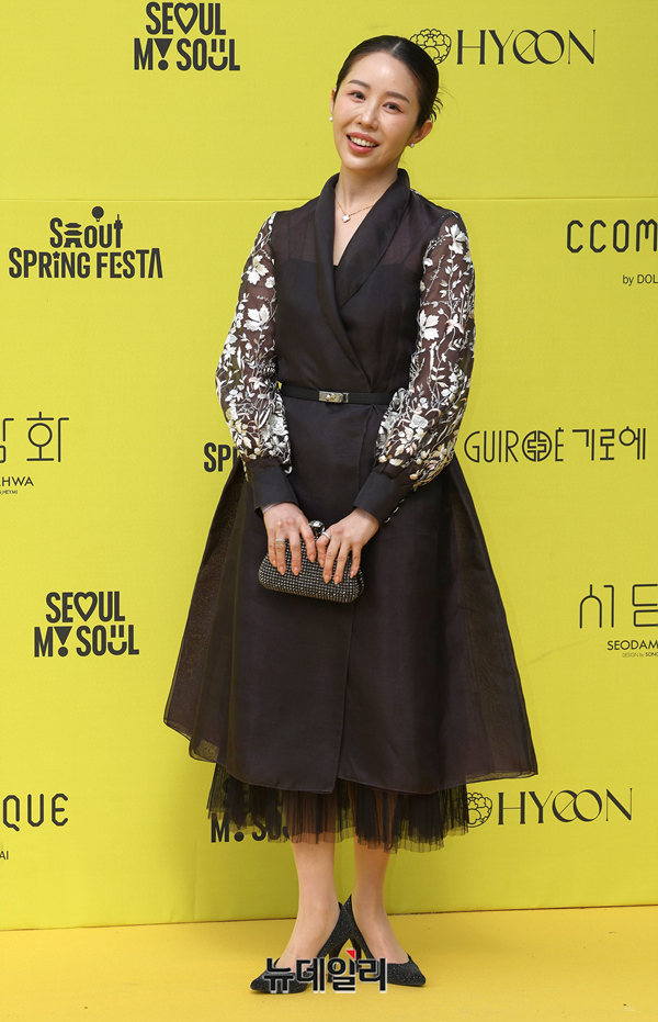 인플루언서 위서영이 2일 오후 서울 중구 덕수궁길에서 열린 '2025 서울패션로드@정동' 패션쇼를 찾아 포즈를 취하고 있다.