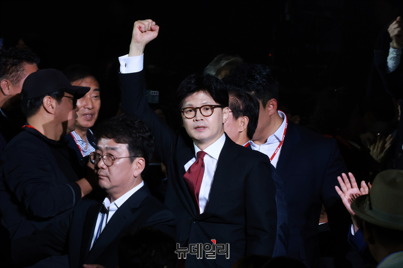 국민의힘 한동훈 대선 경선 후보가 3일 오후 경기 고양시 일산 킨텍스에서 열린 국민이힘 제21대 대통령선거 후보자 선출을 위한 전당대회에 입장하고 있다. (경기 고양=이종현 기자)