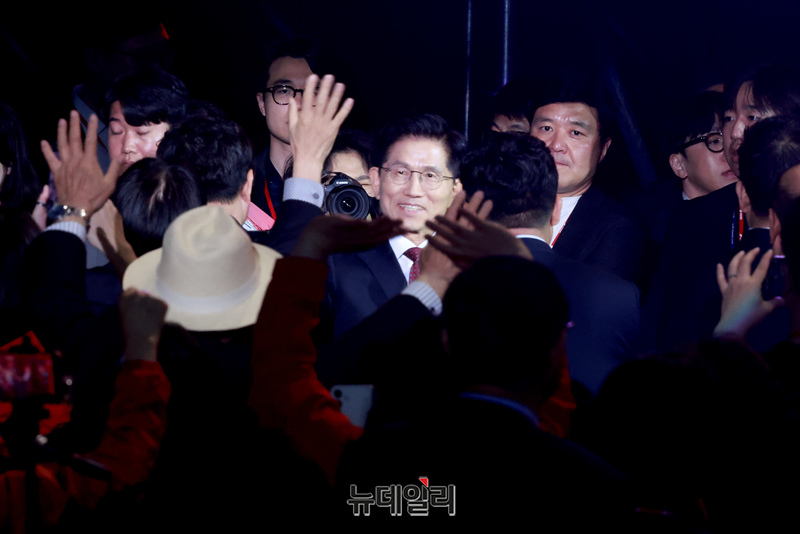 국민의힘 김문수 대선 경선 후보가 3일 오후 경기 고양시 일산 킨텍스에서 열린 국민이힘 제21대 대통령선거 후보자 선출을 위한 전당대회에 입장하고 있다. (경기 고양=이종현 기자)