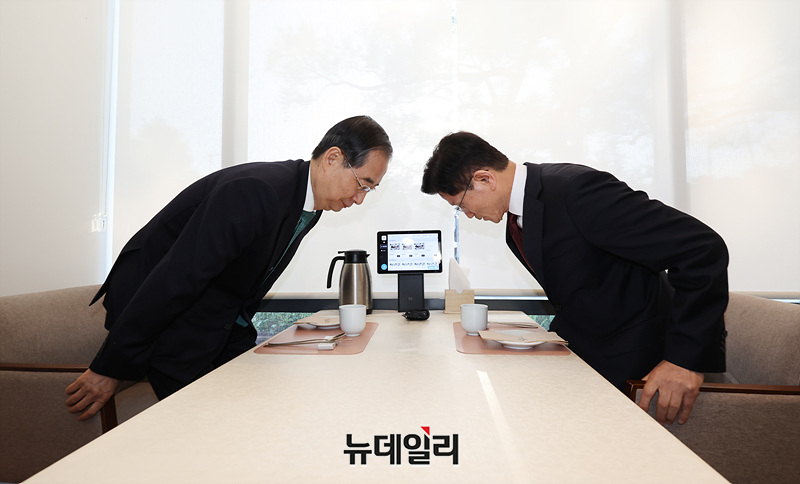 [포토] 단일화 관련 회동 나누는 한덕수-김문수