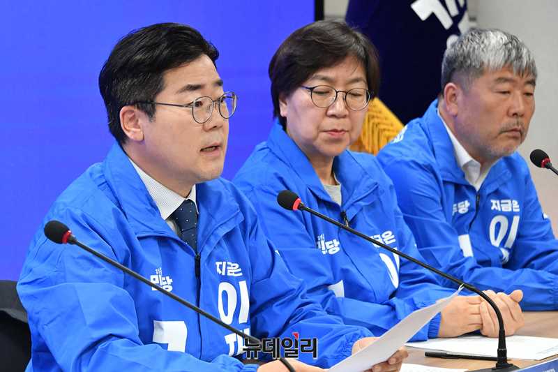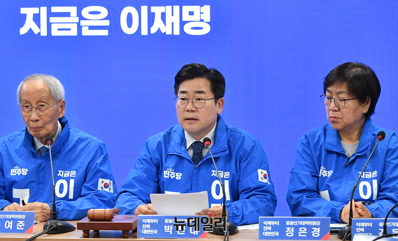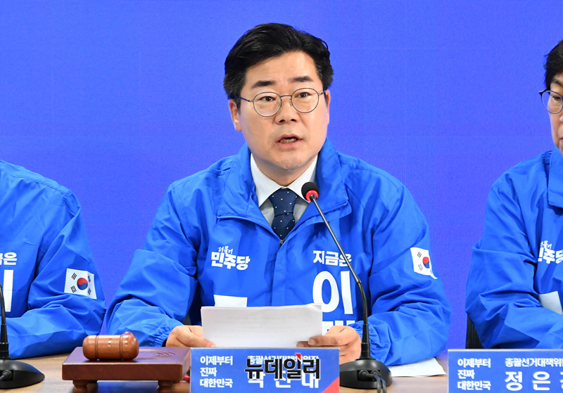 박찬대 더불어민주당 총괄선거대책위원장이 9일 오전 서울 여의도 중앙당사에서 열린 중앙선거대책위원회의에서 발언하고 있다.