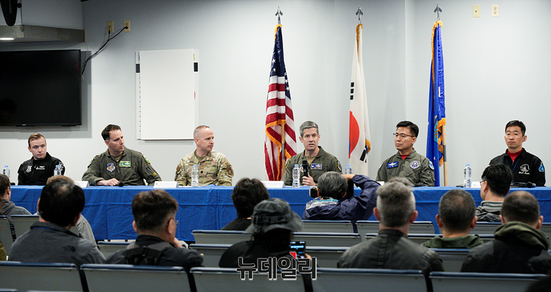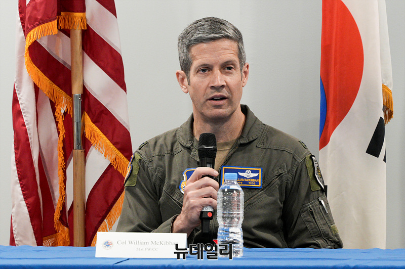 제51전투비행단장 윌리엄 멕키빈 대령이 9일 오전 경기 평택시 오산공군기지에서 열린 2025 오산에어파워데이 미디어데이에서 인사말을 하고 있다.6년 만에 재개된 오산에어파워데이는 9일과 10일 양일간 오산공군기지에서 열린다. 입장은 오전 8시부터 가능하다. 에어쇼는 오전 10시 30분에 시작되고 입장 마감은 오후 5시다.서정리역에서 행사장까지 무료 셔틀버스가 운행되고 입장을 위해서는 신분증(운전면허증 또는 여권)을 지참해야 한다. (경기 평택=서성진 기자)
