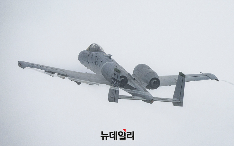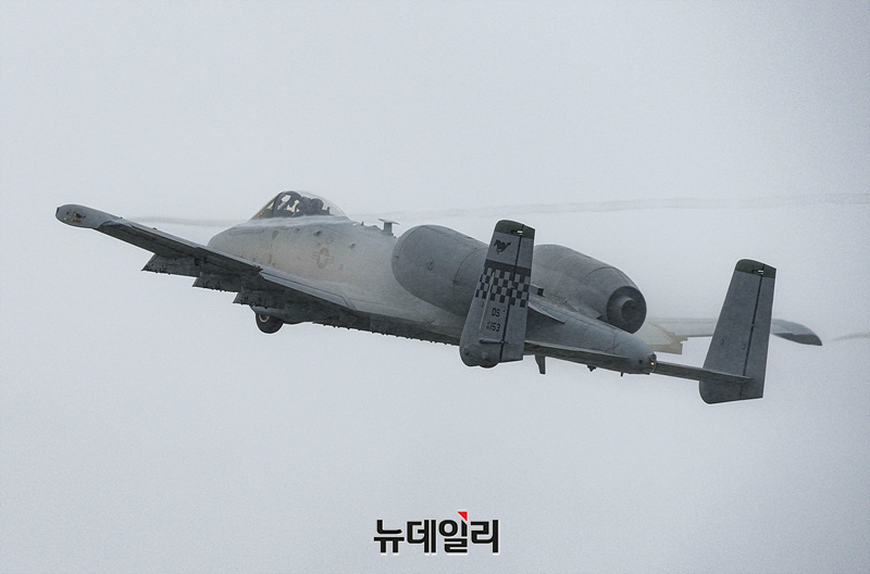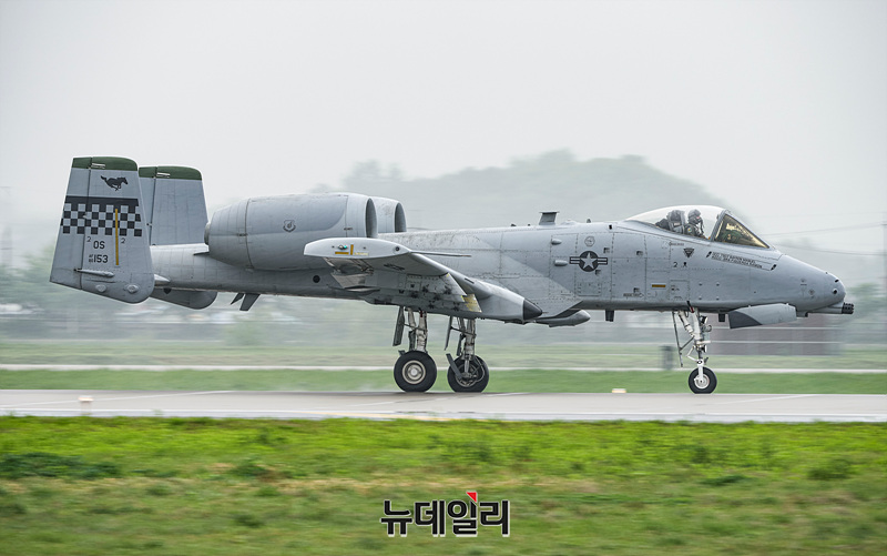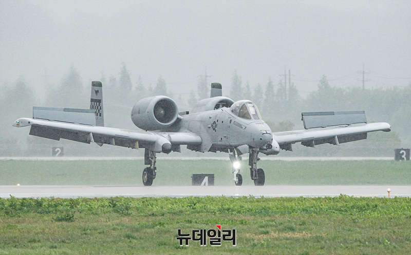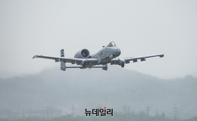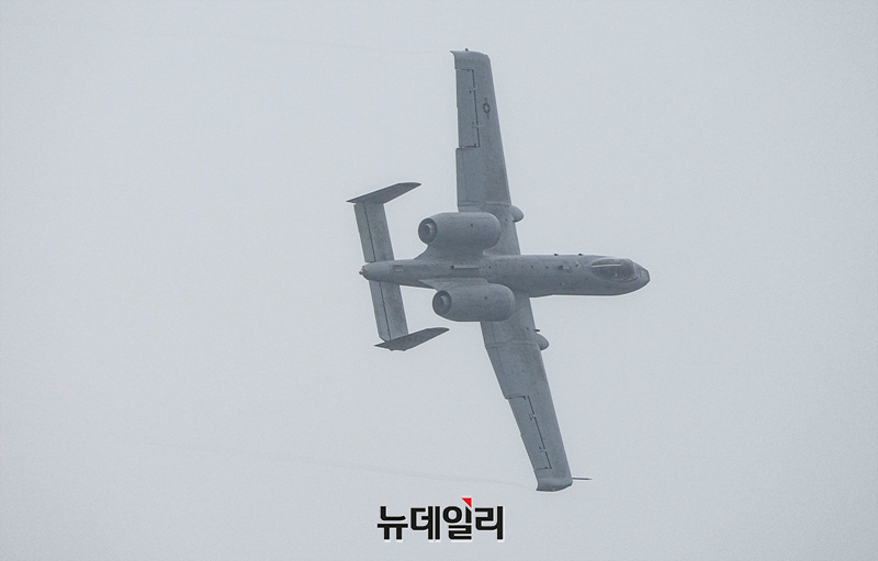 2025 오산에어파워데이 개막을 앞둔 9일 오후 경기 평택시 오산공군기지에서 열린 미디어데이에서 미 공군 A-10 공격기가 근접항공지원 시연 리허설을 하고 있다.6년 만에 재개된 오산에어파워데이는 9일과 10일 양일간 오산공군기지에서 열린다. 입장은 오전 8시부터 가능하다. 에어쇼는 오전 10시 30분에 시작되고 입장 마감은 오후 5시다.서정리역에서 행사장까지 무료 셔틀버스가 운행되고 입장을 위해서는 신분증(운전면허증 또는 여권)을 지참해야 한다. (경기 평택=서성진 기자)
