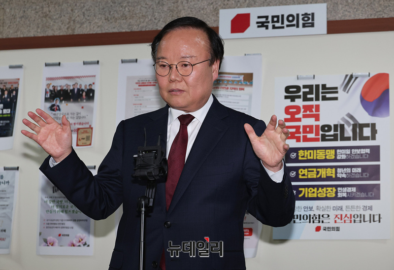 [포토] 김문수-한덕수 단일화 실무협상 답하는 김재원 비서실장