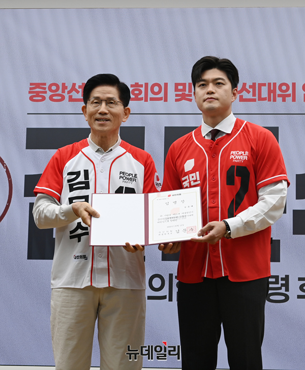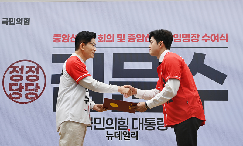 [포토] 김용태 의원에게 임명장 수여하는 김문수 국민의힘 대선후보